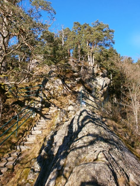 Im heutigen Post geht es am steilen Westhang hoch über den Allerheiligen-Wasserfällen von der Klosterruine Allerheiligen wieder zurück zum Parkplatz unterhalb der Wasserfälle an der Straße Allerheiligen-Oppenau. Dieser Weg führt zum Teil mit einem Geländer gesichert und am Aussichtspunkt Engelskanzel vorbei durch einen naturnahen Schluchtwald.